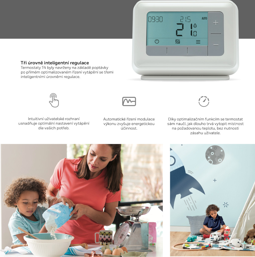 Termostaty T4 zjednodušují ovládání vytápění řízením teploty interiéru pomocí časových programů.