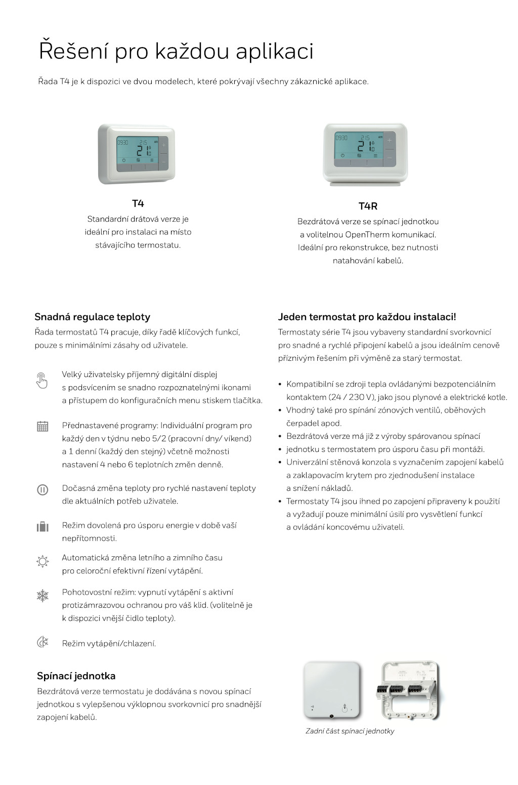 Řada termostatů T4 byla navržena pro použití v domácnostech a menších komerčních prostorách.